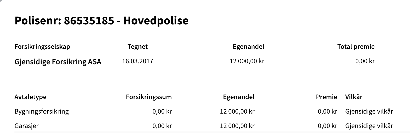 Forsikringsbevis