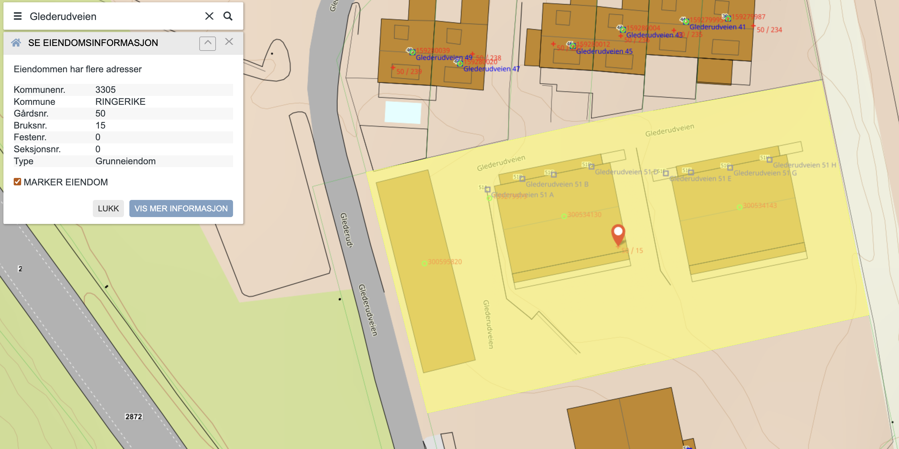 Detaljert informasjon om eiendommen fra kommunen